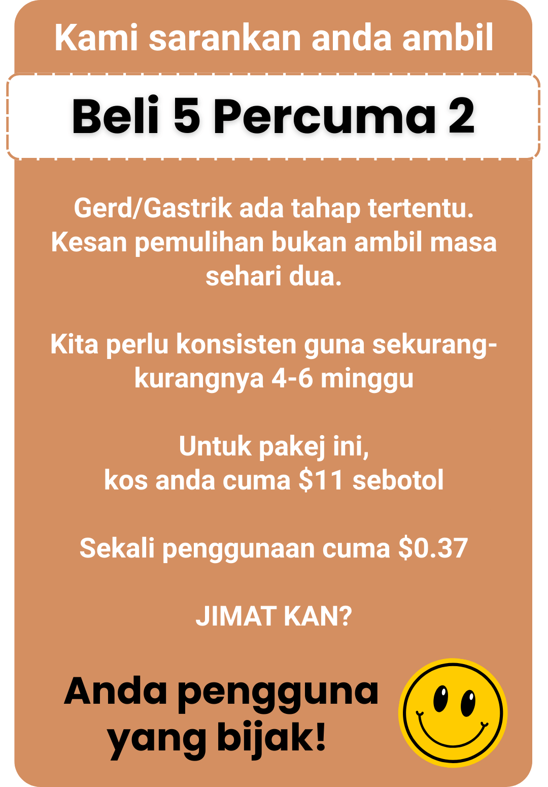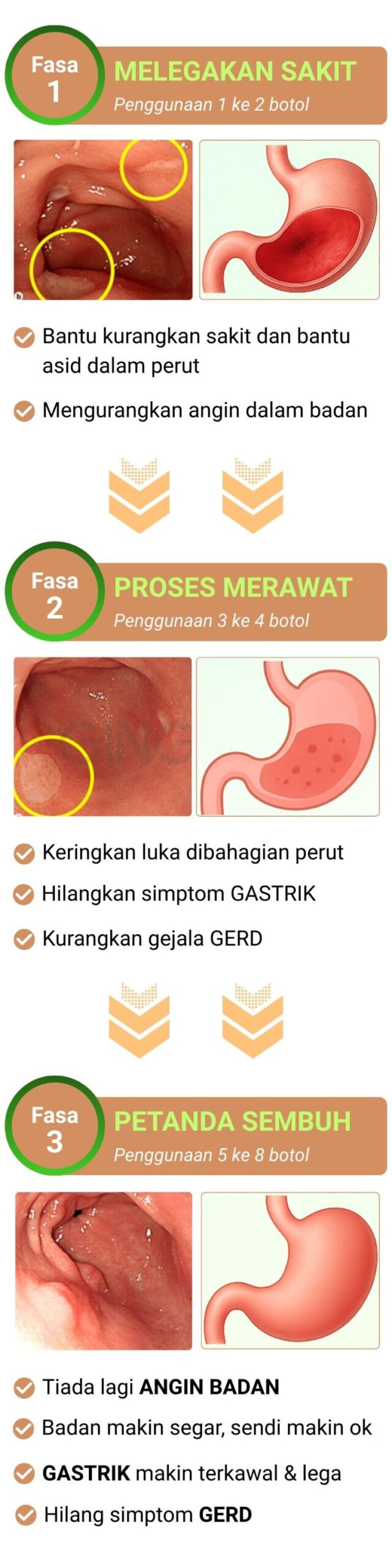 Gerd/Gastrik ni ada tahap-tahap dia. Kami sarankan guna minimum 4 minggu untuk kesan optimum. Bukan magic, tapi berkesan bila konsisten. Insyallah